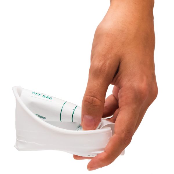Die kleine Notfalltoilette ist aus recycelten Materialen hergestellt. Dank des Unisex-Adapters können auch Frauen im Stehen, Sitzen oder Liegen pinkeln. Die kleinen Pinkelbeutel sind federleicht (nur 34 g) und echt praktisch. Ideal für die Handtasche, den Rucksack oder das Handschuhfach.